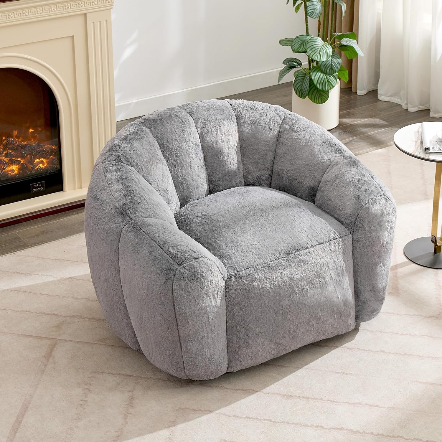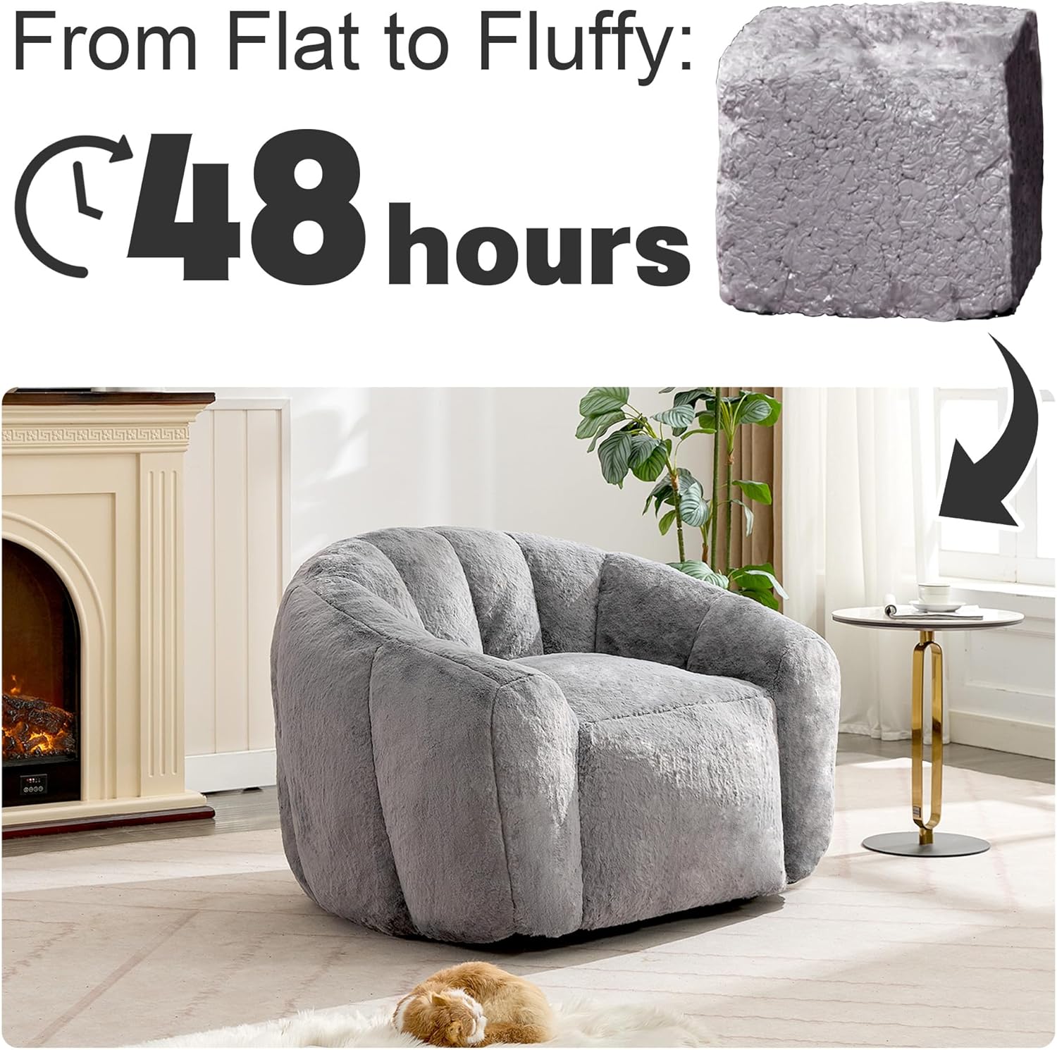 • Tecido Luxuoso: Revestida em pelúcia sintética (faux fur) na cor cinza escuro, a cadeira tem toque suave, visual sofisticado e é altamente convidativa para momentos de descanso.
